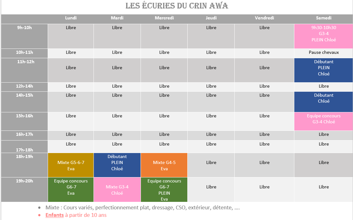 * Propriétaire ou cavalier extérieur avec son propre cheval : à partir de 10 €